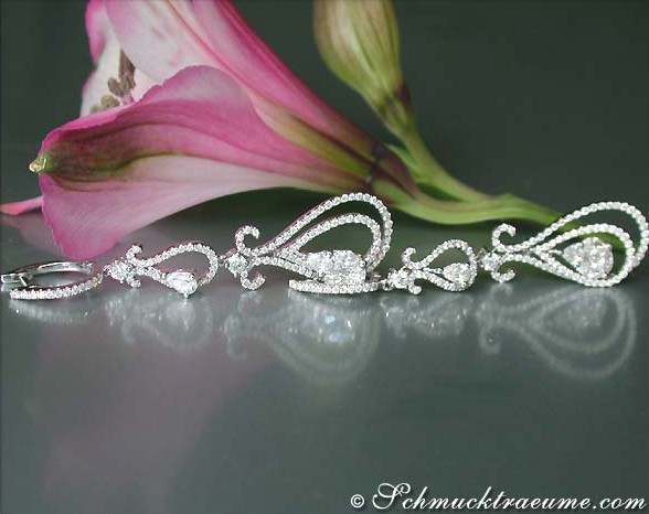 Mit diesen extra langen Diamanten-/Brillanten Ohrgehängen präsentieren wir Ihnen erneut ein außergewöhnliches Spitzenklasse-Schmuckstück aus unserer Illusion-Serie, das durch feminine Eleganz und erlesene Diamantenqualität beeindruckt. Unter Verwendung feinster Diamanten in vier verschiedenen Schliffarten entsteht ein wahres Luxus Juwel für Damen mit hohen Ansprüchen!