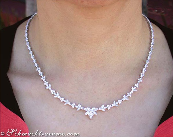 Traumhaft schöne Formen, meisterhafte Goldschmiedearbeit von Hand, vollendete Eleganz - all das zeichnet dieses prächtige Brillanten & Diamanten Collier aus. Ein Juwel der Nobelklasse, das auch hohen Ansprüchen mühelos gerecht wird.