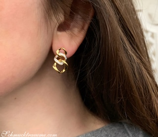 Darüber wurde jeweils ein Brillant in Zargenfassung gesetzt, wobei sich an dessen Rückseite die Verschlüsse befinden.