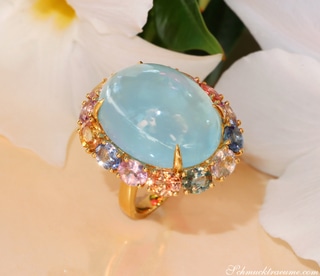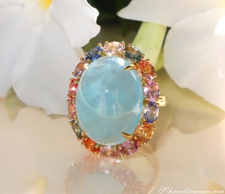 Opulenter Milky Aquamarin Ring mit Multicolor Saphiren