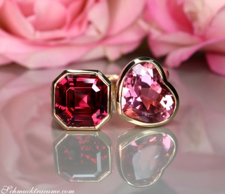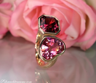 Prächtiger "Toi et Moi" Ring mit Pink Turmalin und Rhodolith