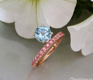 Raffinierter Aquamarin Ring mit rosa Saphiren