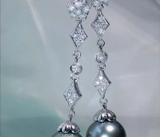 Extra lange Tahitiperlen Ohrringe mit Diamanten