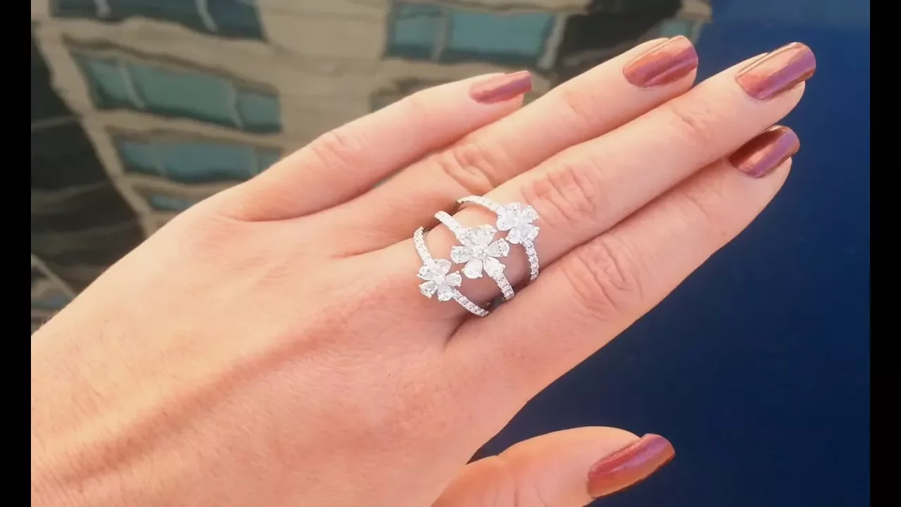Mit diesem Diamanten Ring im Blüten Design präsentieren wir ein exquisites Schmuckstück, das durch feminine Eleganz beeindruckt und gleichzeitig dank des ungewöhnlichen Designs garantiert ins Auge fällt.