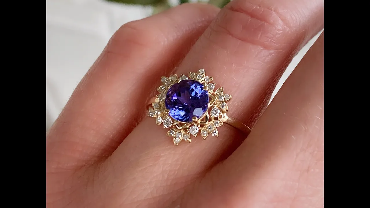 Zarter Tansanit Ring mit Diamanten im Schneeflocken Design