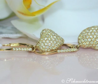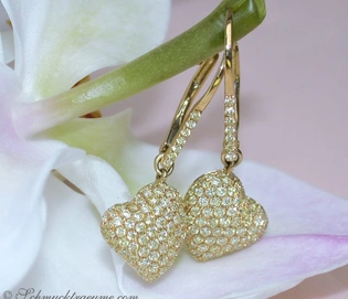 Feine Diamant Herz Ohrringe in Gelbgold 750