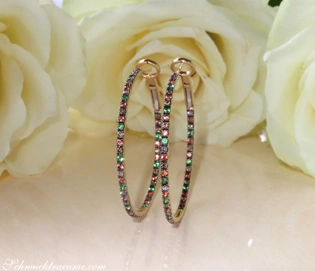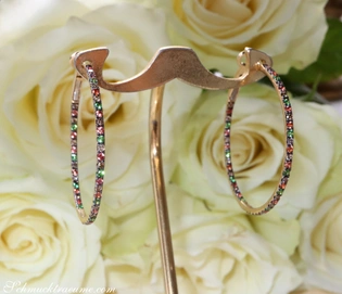 Zarte Creolen mit naturbaunen Diamanten, orangen Saphiren & Tsavoriten