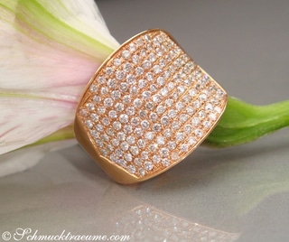 Our goldsmiths have created a dreamlike exclusive piece of jewellery with this extravagant diamond ring: 161 brilliant diamonds in micropavé setting sparkle in competition on the stately and unconventional ring head.