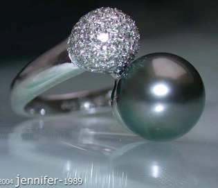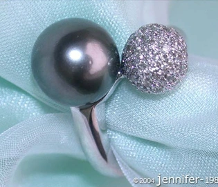 Glamorous Tahitian Pearl Ring with Diamond Pavé Ball