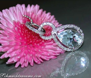 Delicate Aquamarine Teardrop Pendant with Diamonds