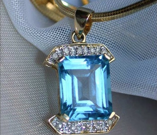 Pretty Blue Topaz Diamond Pendant