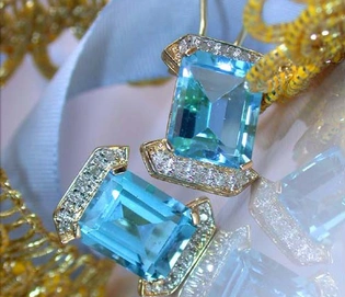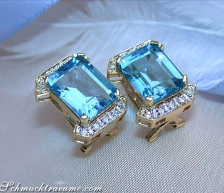 Attractive Blue Topaz Earrings with Diamonds