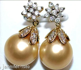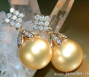 A very large golden southsea pearl (perfectly rounded, silky smooth skin and high gloss luster) is set into a pretty diamond setting.