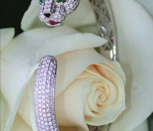he ring head is dominated by a huge, elegantly modelled panther head, which is completely set with finest diamonds.