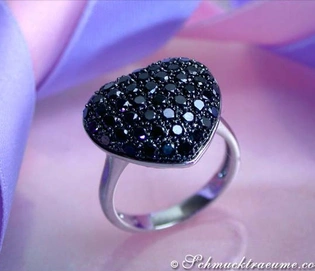 Cute Black Diamond Heart Ring