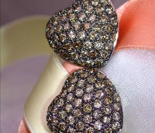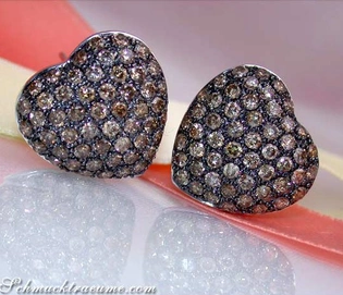 Feminine Heart Earrings with Brown Diamonds
