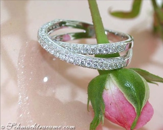 Modern chic, striking dimensions, sophisticated charm - all this characterises this multi-row diamond ring in white gold 18k. A magnificent piece of jewellery which, thanks to its solid workmanship, also promises perfect wearing comfort.