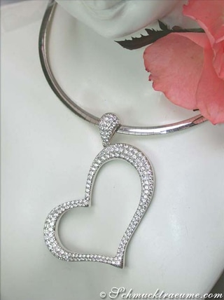 With this tremendous diamond heart pendant, we present an unmissable eye-catcher which enchants by stately measurements and unusual details.