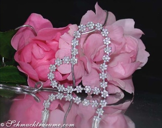 First of all, oval and pear-shaped Ceylon sapphires (i.e. the finest quality in deep cornflower blue colour, very good transparency and excellent cut) are set close together in the centre of this huge and elegantly curved heart.
