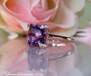 With this stately Amethyst diamond ring we present a piece of jewellery in a highly interesting design which convinces above all by its playful refinement.