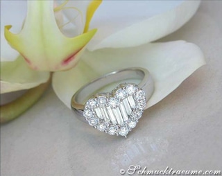 Feminine charm, elegant refinement, exquisite diamond quality - these are the attributes of this impressive diamond heart ring that will impress especially women who have a preference for particularly feminine designs.