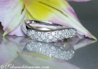 First, the front side of this ring (4 mm wide) is crafted in curved design and therefore slightly resembles a wave. It is set with black diamonds entirely.