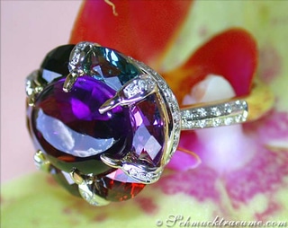 All around, right up to the lateral ring shanks, diamonds are now set in an extremely imaginative design - somewhat reminiscent of the Art Deco style.