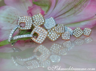 The bracelet is closed by a whitegold snap closure that is crafted in an elegant design and set with full cut diamonds on the front side.