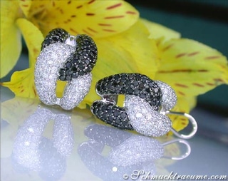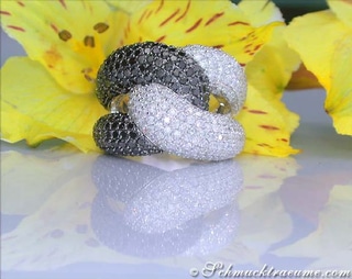 Stately dimensions meet extravagant lines: Our bangle with black and white diamonds convinces women who don't want to do without particularly striking pieces of jewellery.