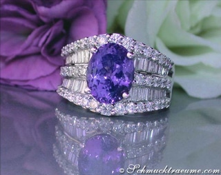 With this tanzanite ring, set with an emerald cut AAA tanzanite and exquisite diamonds and crafted accurately in white- and rosegold 18k, we present a piece of jewellery that captivates with feminine charm and unusual shapes.