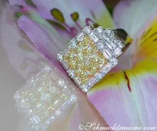 Another rarity we present to you with this splendid ring with yellow diamonds and in flawless workmanship and exquisite diamond quality. A piece of jewellery that will delight especially ladies who appreciate first-class Yellow Diamond quality.