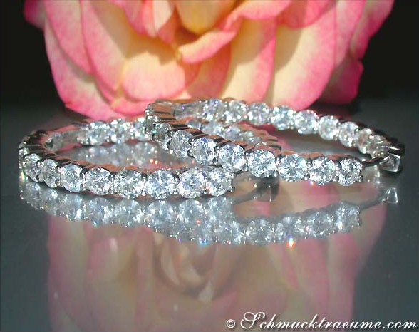 These hoops are set with 44 large diamonds (0.20 ct. each) on the front and also on the inner back. This creates a dreamlike sparkle and flash - from all sides, with every movement!