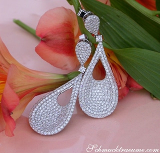 This piece of jewellery is also another jewel of our Illusion series, i.e. you could think that the earrings are set with large diamonds. Only when you look at them from close up you will notice that individual stones have been placed extremely close together.