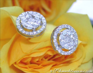 Over the entire length of the ring head, 18 taper cut diamonds are set. These are framed at the top and bottom by a total of 10 marquise-cut diamonds.