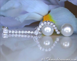 Beautiful pearl quality, excellent craftsmanship, extra length: these are the attributes of these beautiful Tahitian pearl earrings with diamonds, which are guaranteed to attract a lot of attention.