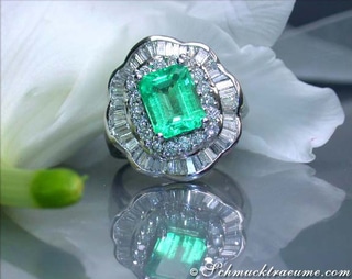 Classic shapes, timeless elegance, dreamlike colour brilliance, absolutely convenient to wear: Our emerald ring with diamonds proves to be a fabulous companion both during the day and in the evening.