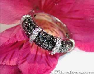 This ring with black and white diamonds is an unusual piece of jewellery that can be worn both during the day and on more elegant occasions.