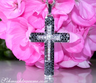 A piece of jewelry that definitely attracts a lot of attention: This magnificent cross pendant with sparkling rubies and diamonds impresses with its unusual, sophisticated design, intense colour brilliance and its stately dimensions.