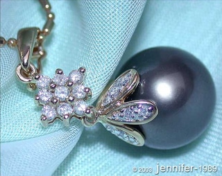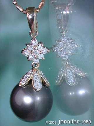 Two very large Tahitian pearls (perfectly rounded, silky smooth skin and high gloss luster) are set into a pretty diamond settings.