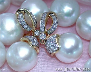 Two Southsea pearls are now attached to the chains - completely flawless, perfectly rounded, silky smooth skin, snow white shimmering, best high-gloss luster.