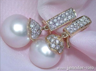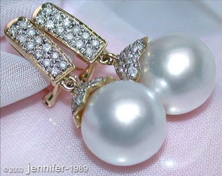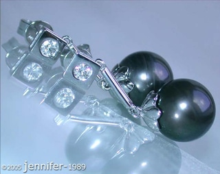 First, these earrings are dominated by two large Tahitian pearls - perfect rounded, silky smooth skin, best to very good luster, completely flawless.
