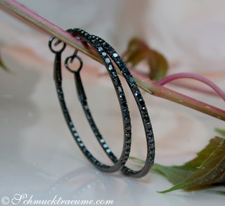 216 black and white diamonds shimmer in these hoops with a rich contrast. A highly attractive piece of jewellery that combines timeless elegance and stylish chic.