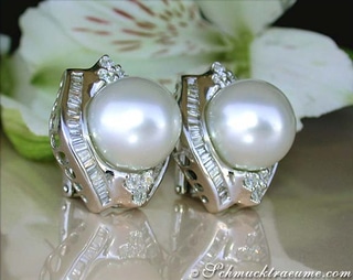 In the middle of the ring head thrones a huge South Sea pearl - snow-white radiant, completely flawless, perfectly rounded, silky smooth skin, the very best high-gloss luster.