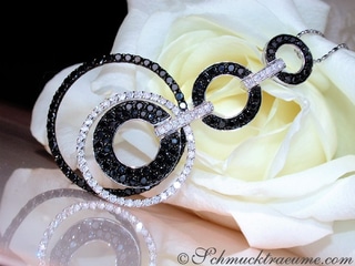 Umrahmt wird der Stein wiederum von schwarzen Diamanten. Auch die Öse, die ebenfalls Platz für stärkere Ketten bietet, ist mit schwarzen Diamanten ausgefasst.