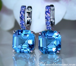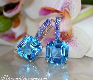 - 1 Blautopas, Smaragdschliff, swiss-blue: 7,49 ct. (12 x 10 mm)