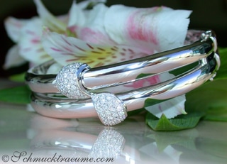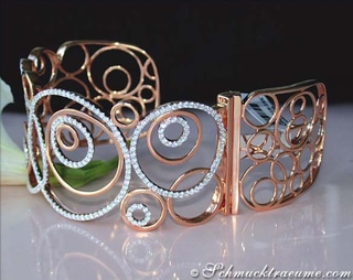 Auch mit diesem massiven, höchst auffallenden Brillanten Armreif in Roségold präsentieren wir ein weiteres ungewöhnliches Unikat, das durch klare Formen und extravaganten Chic überzeugt.