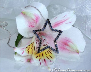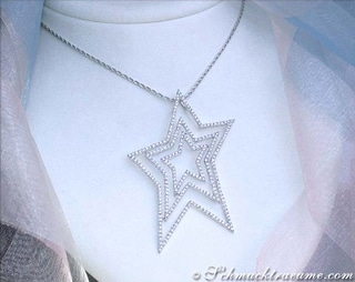 Dieser Anhänger im Stern Design ist komplett mit 48 Vollschliff Brillanten ausgefasst.
