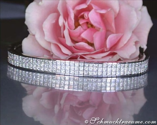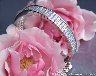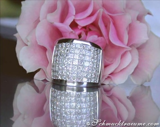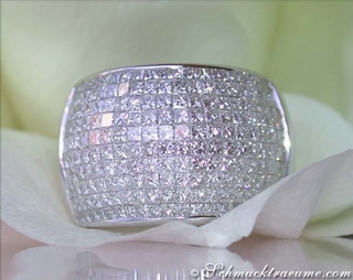 This excellent band with Princess diamonds combines timeless elegance, understatement and attractive charm - a piece of jewellery for ladies who prefer reserved design, but who do not forgo unusual accents.
