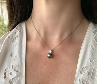 Zunächst steht eine wunderschöne weiße Süßwasserzuchtperle im Mittelpunkt dieses Anhängers: keinerlei Makel, perfekte Rundung, allerfeinster Hochglanzlüster.
