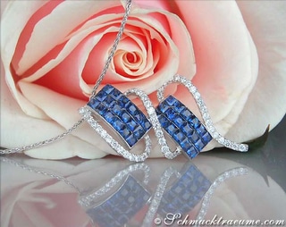 Dank des facettenreichen Princess Schliffs und durch die sehr gute Transparenz der Saphire entsteht hier nicht nur intensives, sondern auch lebhaft funkelndes Farbenspiel.